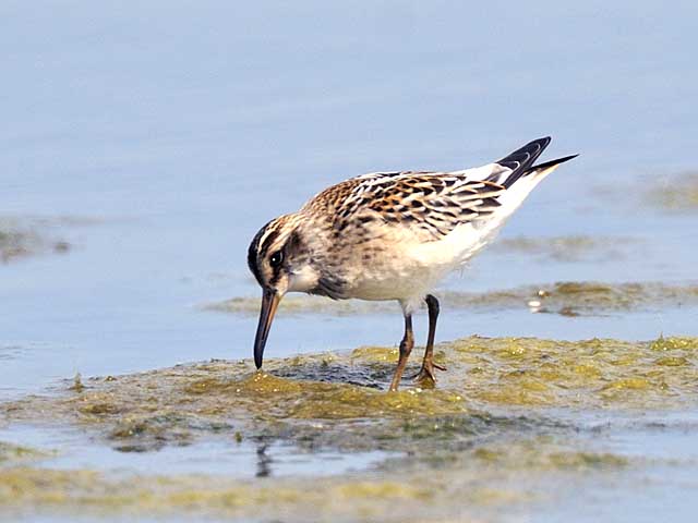 長く鋭い嘴の先端が少し下向きに曲がっていて、眉斑も二重に見えます。