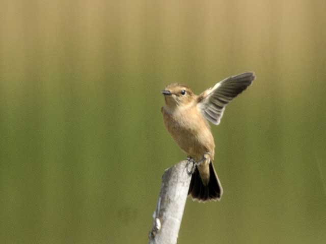 2羽のノビタキが杭の上から虫を探しては飛び回っていました。