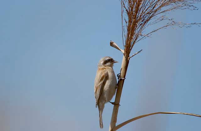 雄に比べると頭の灰青色が薄く、過眼線も黒褐色で薄く見えます。