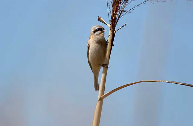雄に比べると頭の灰青色が薄く、過眼線も黒褐色で薄く見えます。