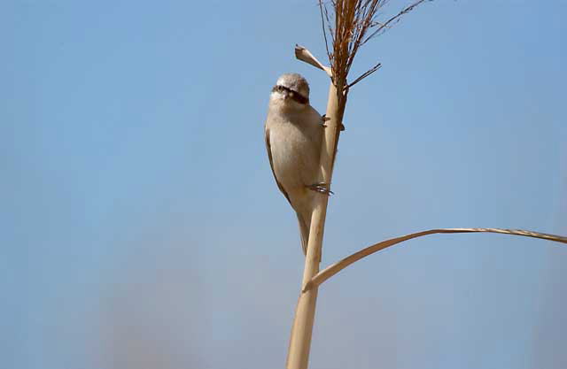 芦の穂先まで上がってきた♀です。