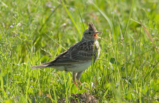 4月も半ばをすぎて緑が一段と濃くなって来てヒバリたちも繁殖の季節を迎え、テリトリーの確保に忙しいようです。