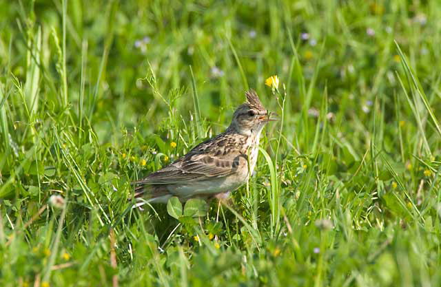 4月も半ばをすぎて緑が一段と濃くなって来てヒバリたちも繁殖の季節を迎え、テリトリーの確保に忙しいようです。