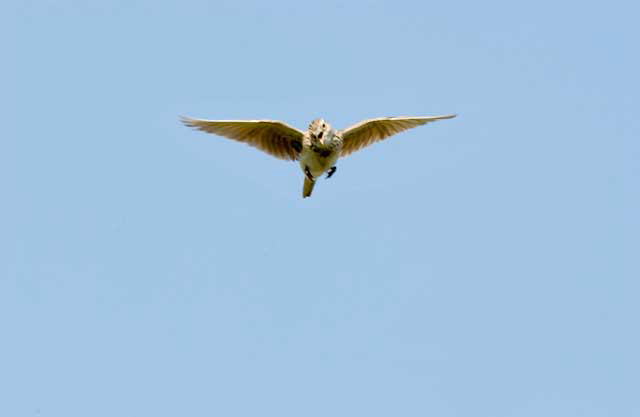 巣の近くの地上で歌い、また、天空で歌いと雄も忙しそうです。