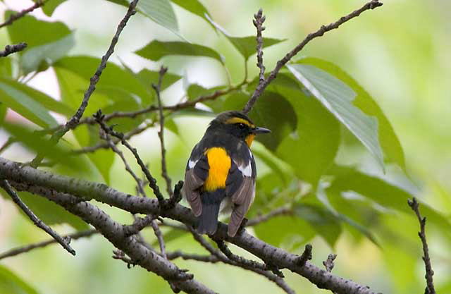 桜の木にキビタキが歌いもせずに静かにとまっているのに出会いました。