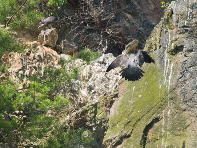 雛は一羽が左の岩の上に見えています。