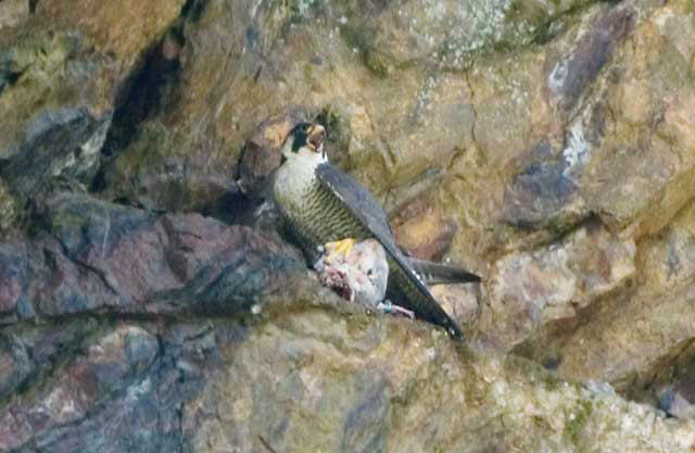 この後、別の岩の窪みの灌木の蔭で食事と調理をしてから雛のいる巣に運ぶとすぐに出てゆきました。