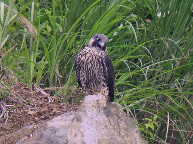 二日ぶりで訪れて見ますとすでに2羽の雛は巣を離れて岸壁の別の場所に巣立っていました。