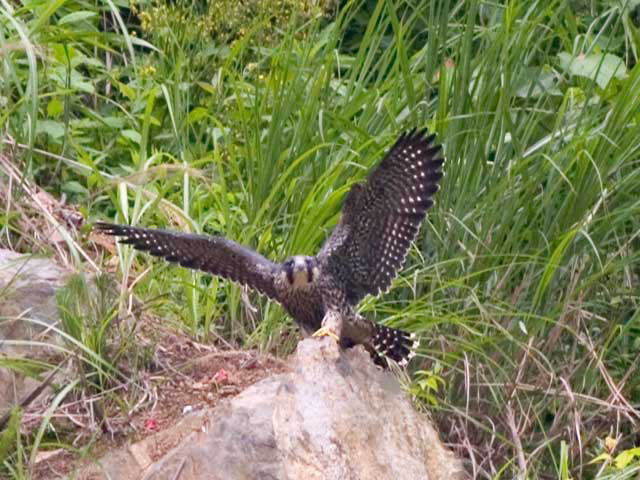 食後の一休みを終えた雛は再び草の中から出てきて羽ばたきの練習を始めました。