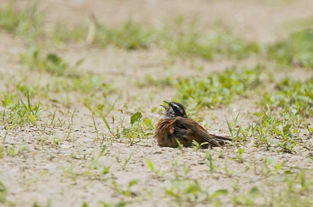 なんとこの子は道で砂浴びをしながら囀っていました。
