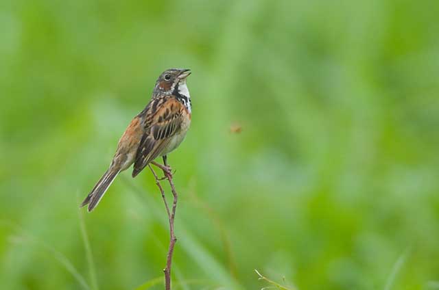 朝の爽やかな草原にホオアカの歌声が響いていました。