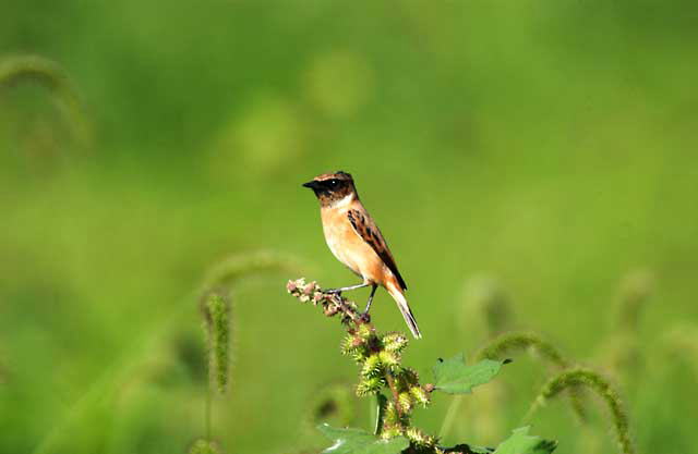 今年もノビタキが高原での繁殖を終えて東南アジアへの渡りを前にやってきました。