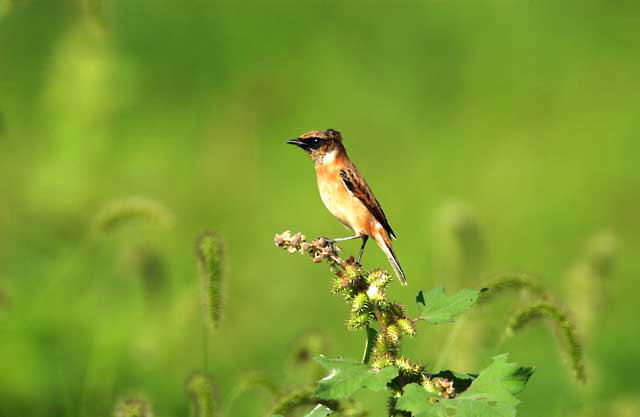 今年もノビタキが高原での繁殖を終えて東南アジアへの渡りを前にやってきました。
