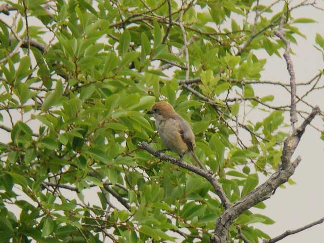羽根の色がボケたモズがいましたので幼鳥と思い撮影しようとしましたが、よく見ると、モズの♀でした。