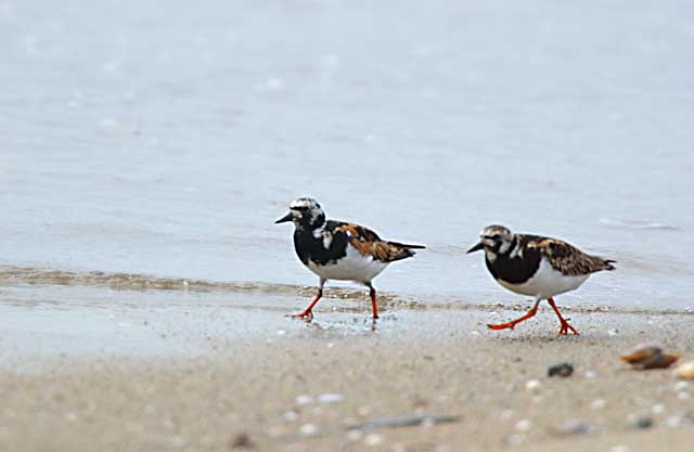 お揃いで波打ち際の散歩でしょうか。