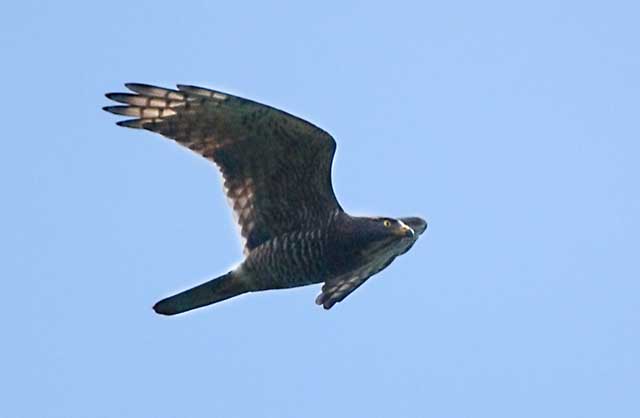 なんとかサシバの特徴の喉の黒い縦の線が見えます。