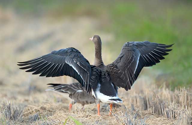 食事をしながらノビをしたり、羽ばたいて羽繕いをしたりしてくつろいだ様子です。