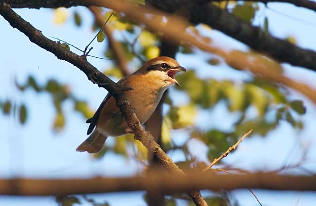 宮跡の近くの御陵で大きな声で縄張りを主張している雄モズに出会いました。