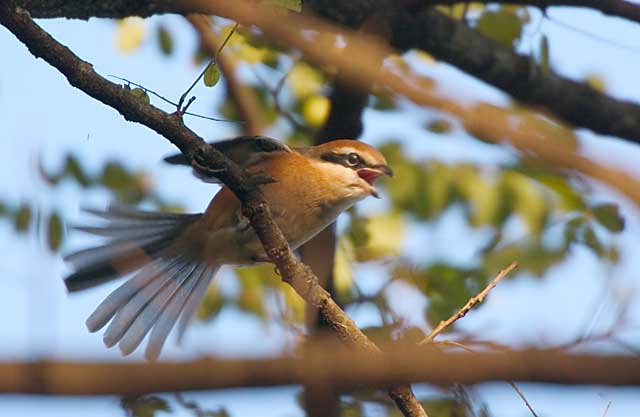 宮跡の近くの御陵で大きな声で縄張りを主張している雄モズに出会いました。