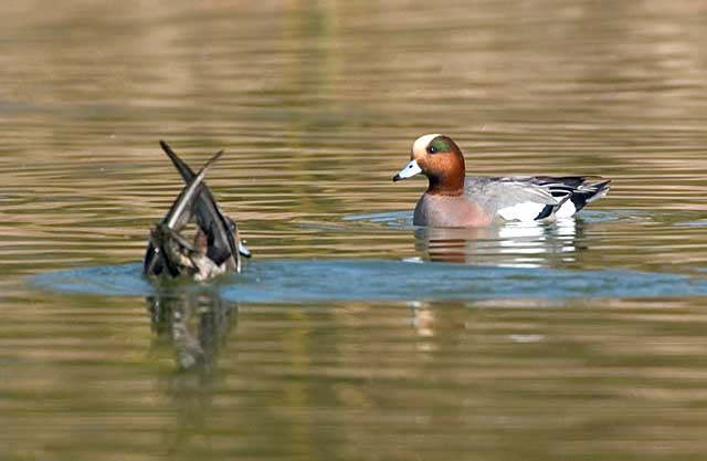 ヒドリガモの雄ですが頭央の白さや目の周りの緑色が強いことなど若干アメリカヒドリの血が入っているようにも見えました。