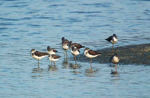 一番右の手前の足の赤いのが寝ているツルシギでその他大勢がアオアシシギです。