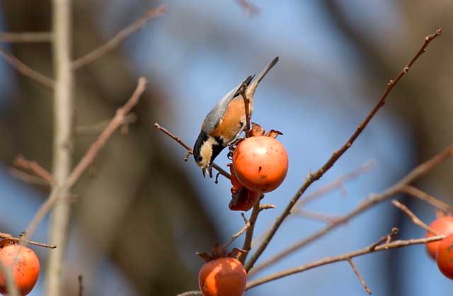 家の庭では、ここ数年メジロのための熟柿を置いてやっていましたが、ヤマガラは見向きもしませんでした。