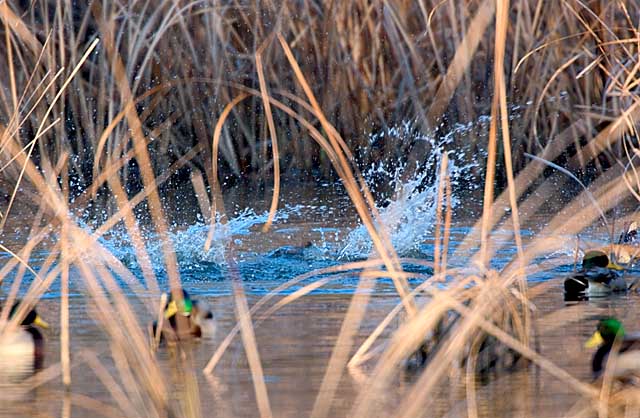 水を蹴立てて潜って追いかけて行くようです。