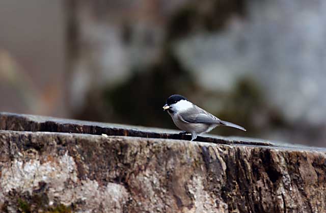 切り株の上に撒いてやったビーナッツを食べています。