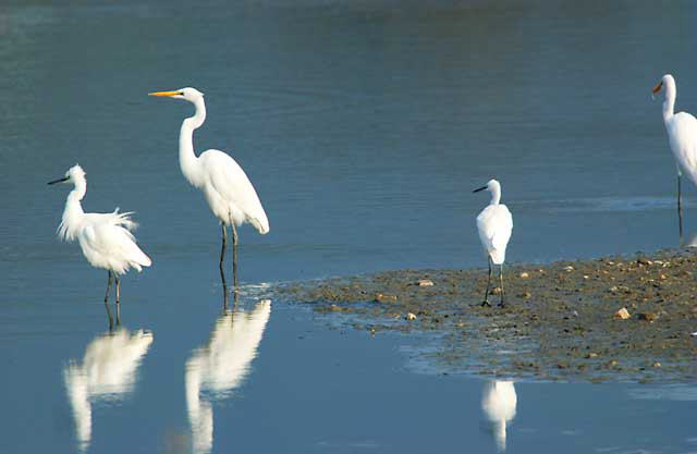 ダイサギ、チュウサギ、コサギが並んでいる写真あればよいのですが、ちょっと離れているので2枚に分けて登場です。