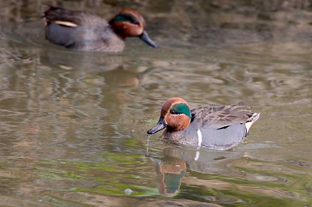 後方の横の白線が通常のコガモ♂です。