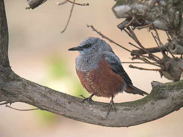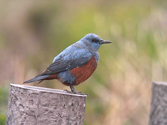 2005.1.27 イソヒヨドリ♂ ツグミと違って留鳥で、海岸の岩場に生息しています。 上の写真と同じ個体です。 |
