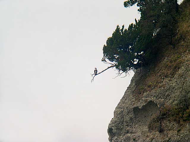 グラスボートを待っている間に見つけた、円月島の南端にとまっていたミサゴです。