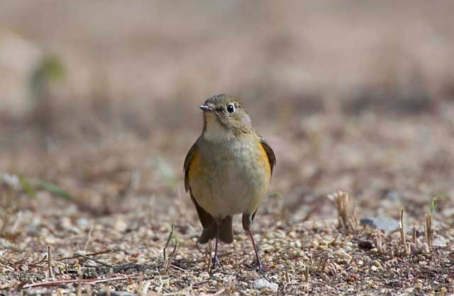 2005.2.4 ルリビタキ♀ 人気のない山道で、この子は撮影できないほど近くまでやって来てこちらを見ていました。 ここのところ、菜園に行くと、ジョウビタキの雌が1mほどの近くまでやって来て、地中から虫が掘り出されるのを待っているのに出会いますが、この子も餌が目当てなのか、好奇心からなのかわかりませんでした。 |
