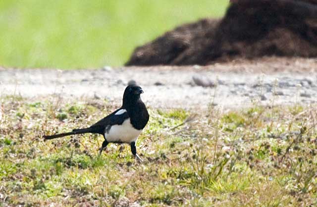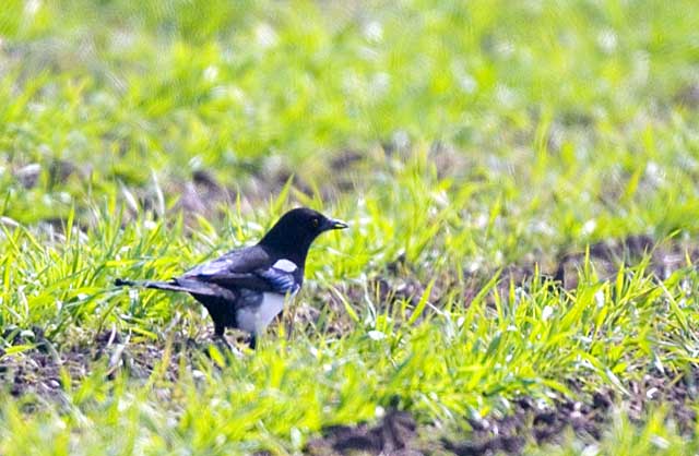 鹿島新籠の海岸近くの部落の畑におりたカササギです。