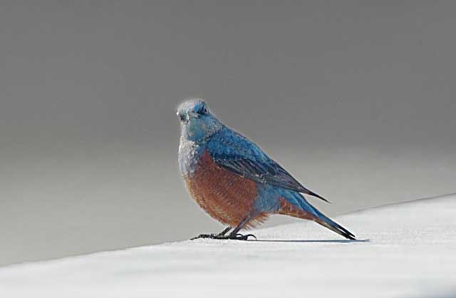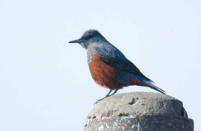 八代の金剛干拓の堤防の上にとまったイソヒヨドリです。