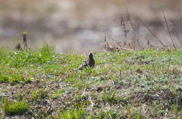 向こうを向いているツグミと大きさを比べてみて下さい。