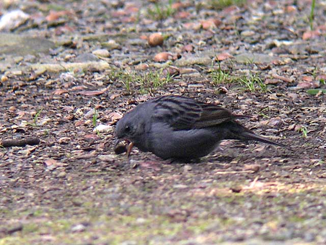 林の下の小道に落ちたドングリを散歩する人たちが踏みしだいてゆくのが、クロジやアオジたちにとって良い食料になっているようです。