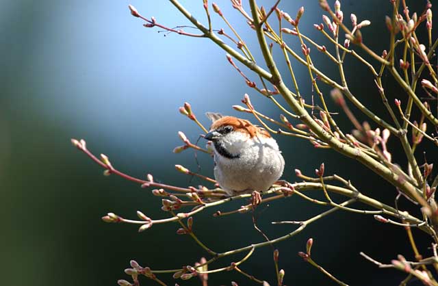 モミジの芽を食べに来ていたニュウナイスズメです。