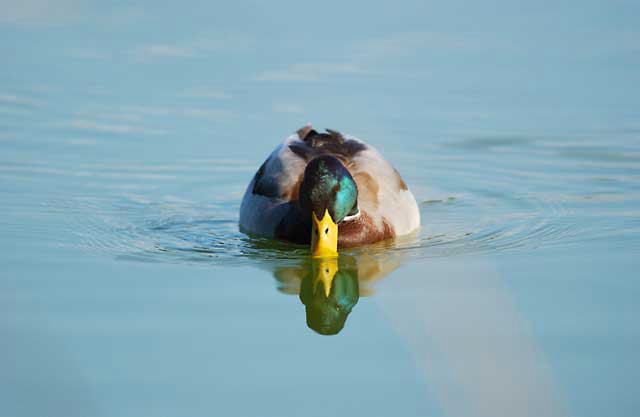 マガモは水の上にいますが、当然、わざわざ水浴びをしたり、水を飲んだりします。