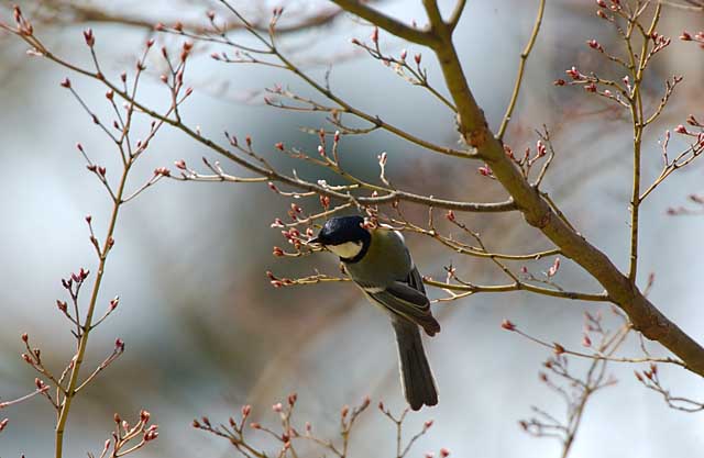 シジュウカラも、ニュウナイと同じような固いモミジの芽が好きなようです。