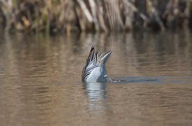コガモやマガモ達と同様に、逆さになっては水底の水草などを食べています。