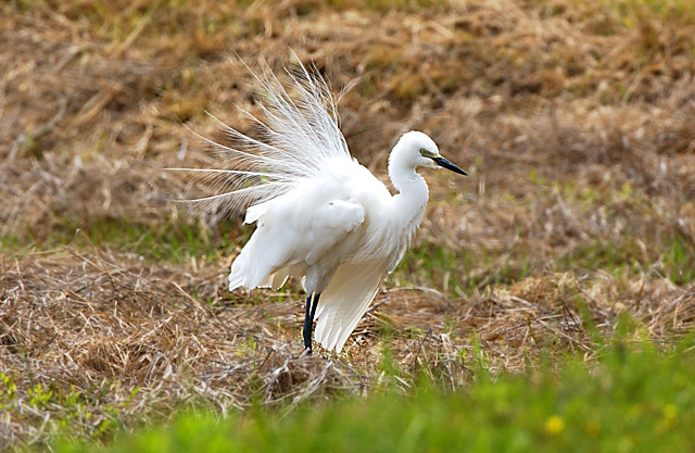 繁殖期を迎えて目先も黄緑色になり飾り羽も立派です。
